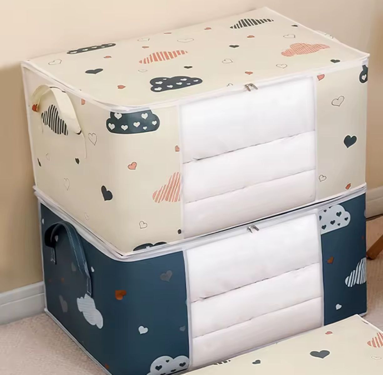Esta bolsa de almacenamiento para edredón está diseñada para proteger tus mantas y ropa del polvo y la suciedad. Su material resistente y cierre con cremallera garantizan una clasificación ordenada y un almacenamiento seguro, ideal para el hogar o durante movimientos. Mantén tus prendas voluminosas organizadas y en perfectas condiciones con este organizador práctico y duradero.